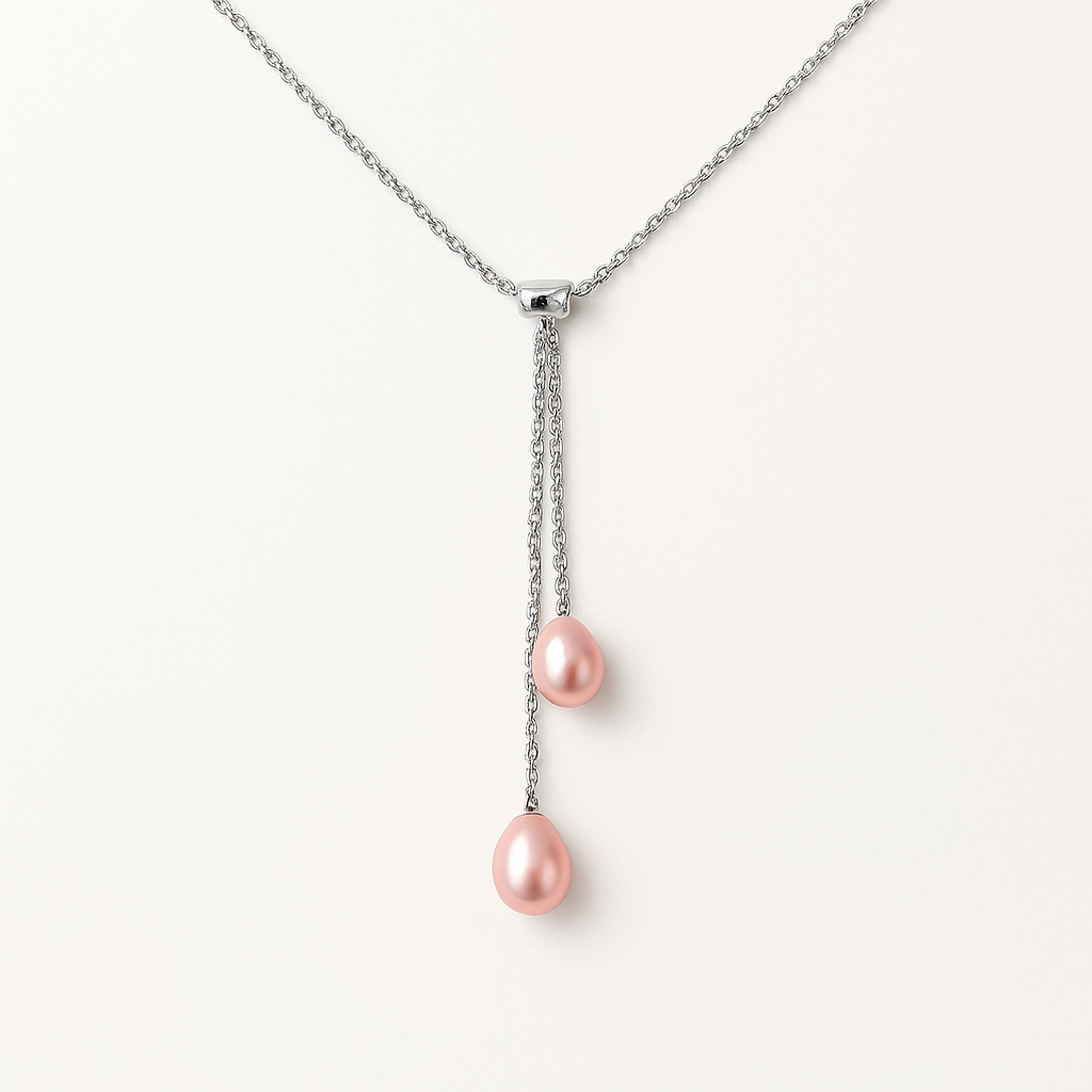 - Toi & Moi Collar de Plata 2 Perlas Auténticas Cultivadas de Agua Dulce